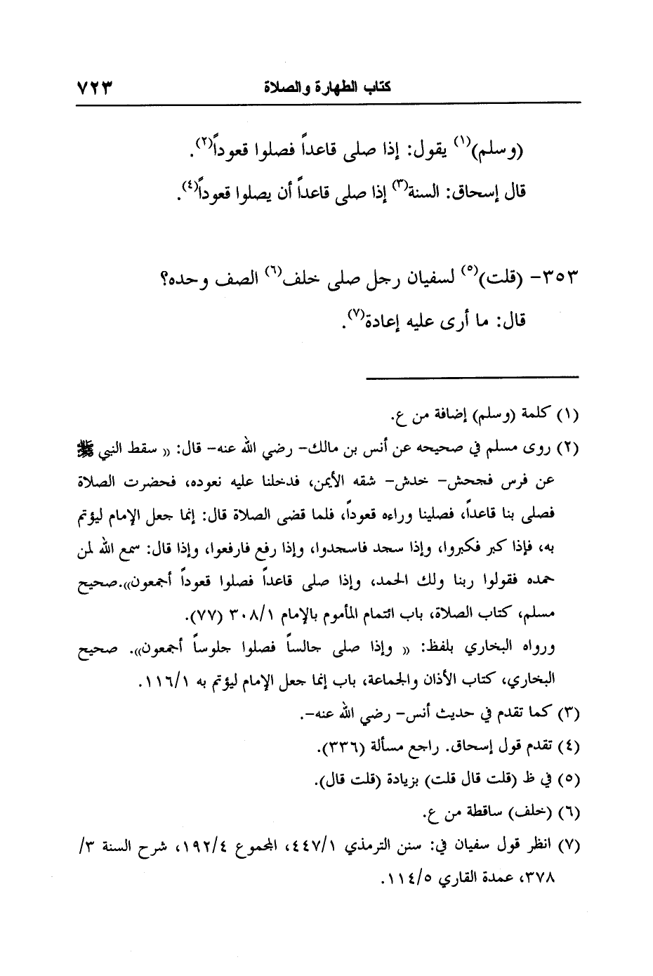 [353-] (قلت) 5 لسفيان رجل صلى خلف6 الصف وحده؟