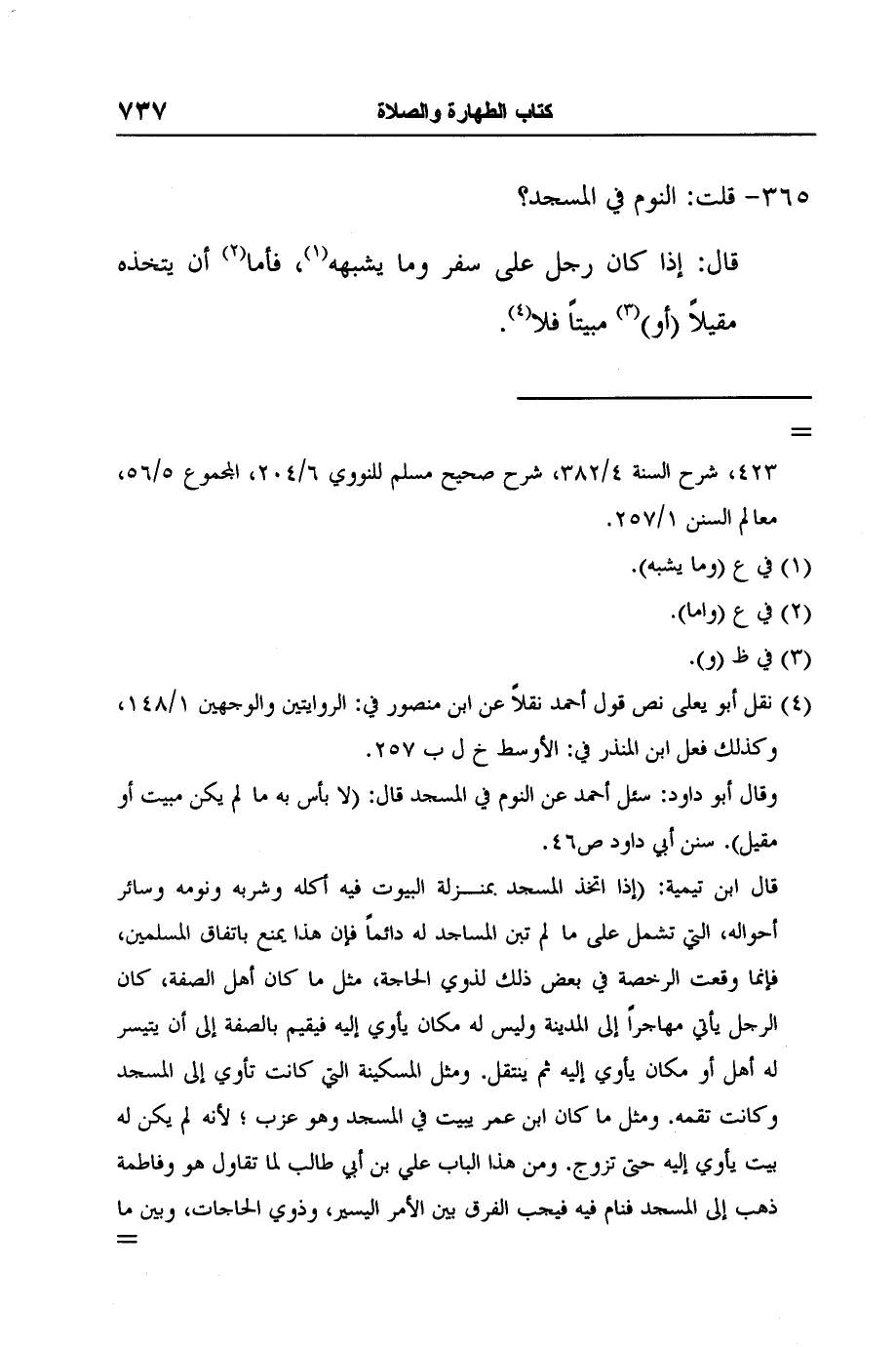 وقال أبو داود: سئل أحمد عن النوم في المسجد قال: (لا بأس به ما لم يكن مبيت أو مقيل) . سنن أبي داود ص46.
