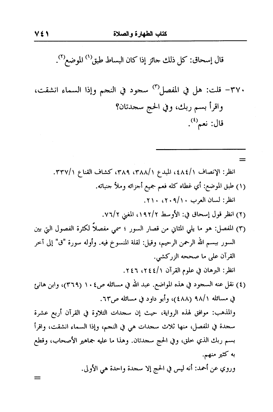 4 نقل عنه السجود في هذه المواضع. عبد الله في مسائله ص104 (369) ، وابن هانئ في مسائله 1/98 (488) ، وأبو داود في مسائله ص63.