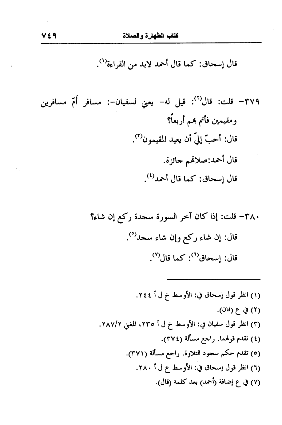 [379-] قلت: قال2: قيل له- يعني لسفيان-: مسافر أَمّ مسافرين ومقيمين فأتم بهم أربعاً؟