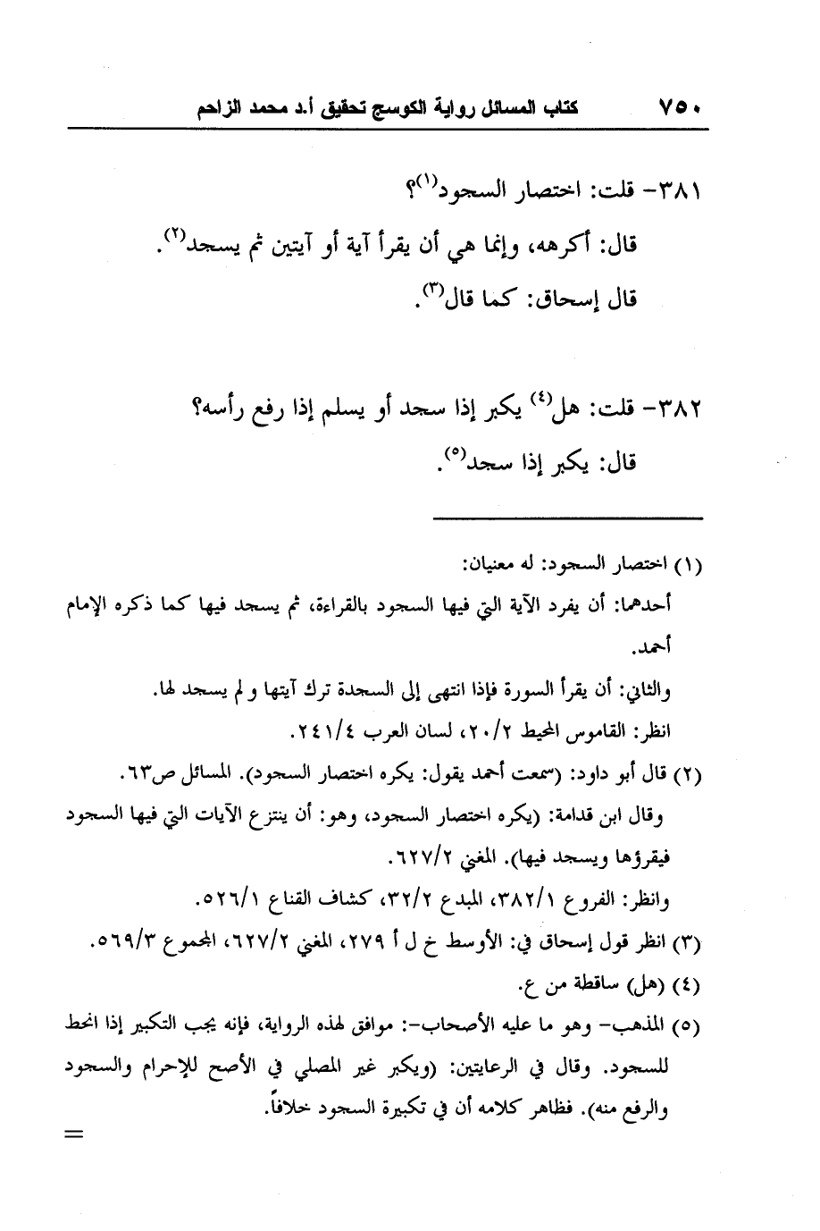 2 قال أبو داود: (سمعت أحمد يقول: يكره اختصار السجود) . المسائل ص63.