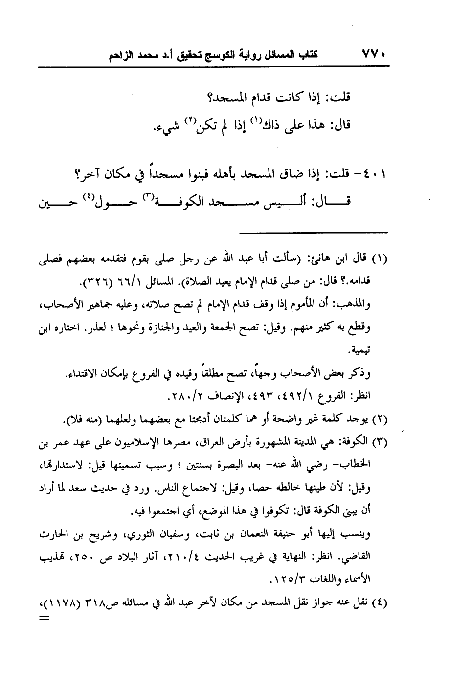 4 نقل عنه جواز نقل المسجد من مكان لآخر عبد الله في مسائله ص318 (1178) ، وصالح في مسائله 1/295، 3/34 (241، 1272، 1273) .
