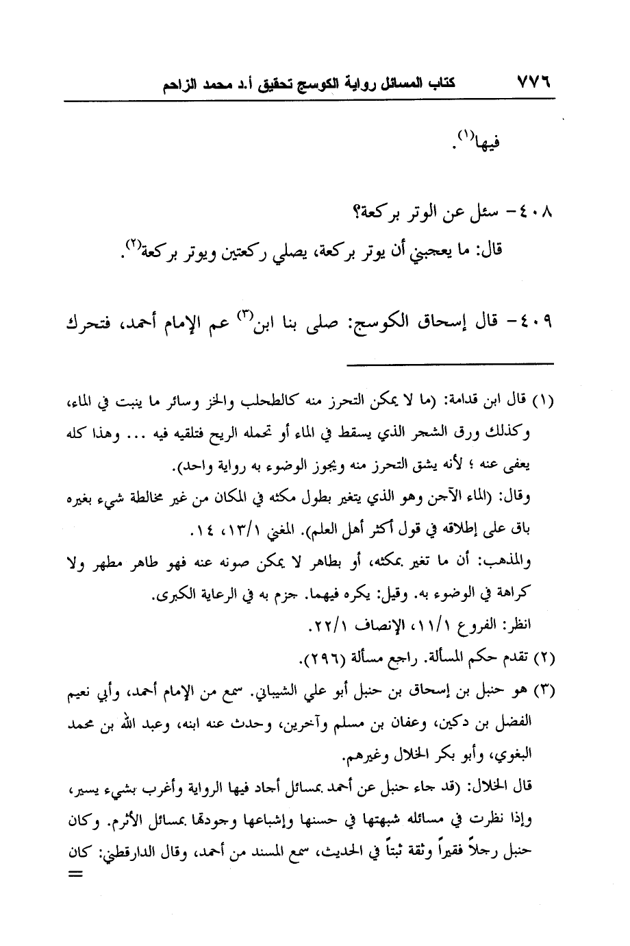 [409-] قال إسحاق الكوسج: صلى بنا ابن3 عم الإمام أحمد، فتحرك
