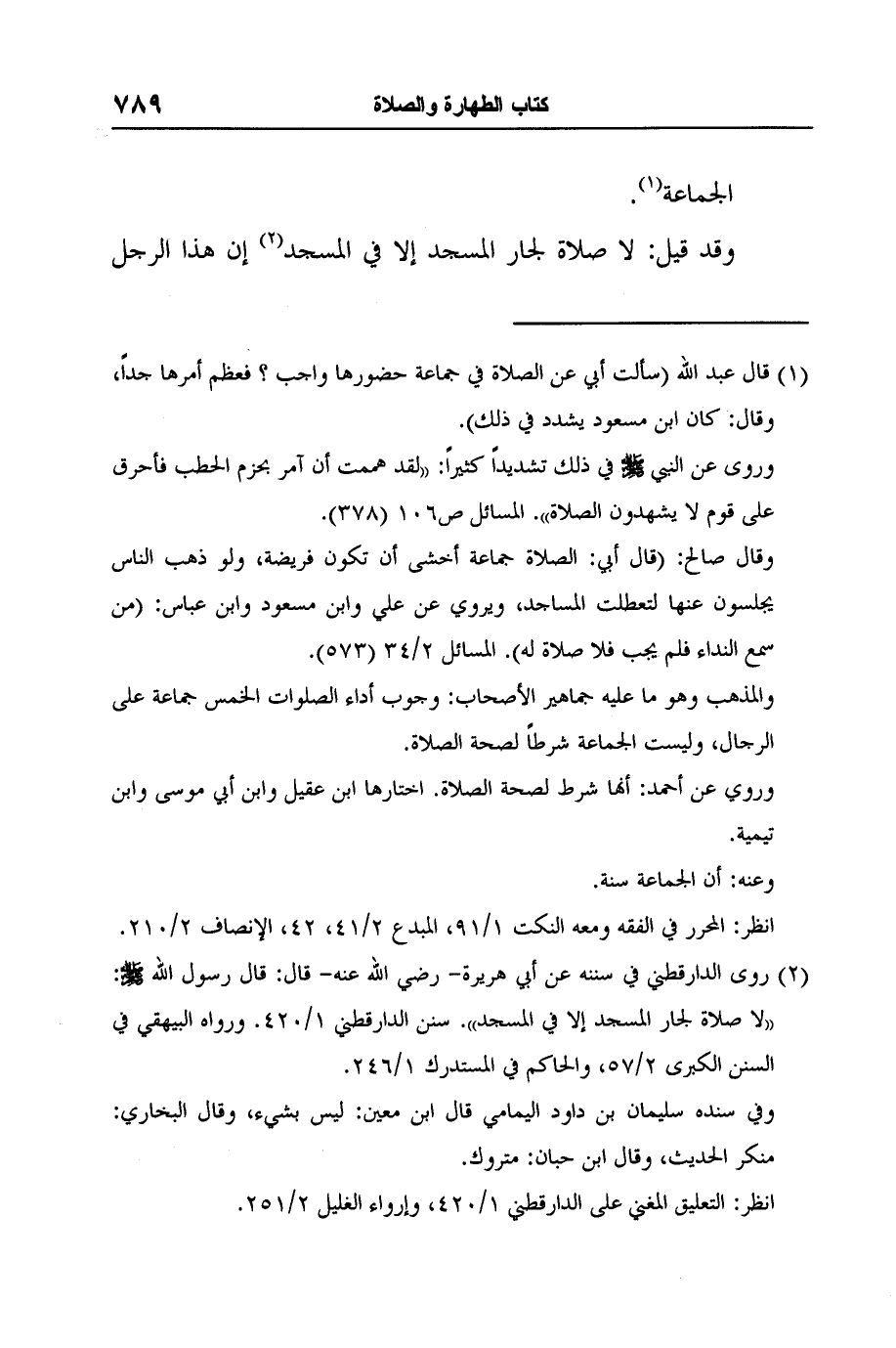 2 روى الدارقطني في سننه عن أبي هريرة- رضي الله عنه- قال: قال رسول الله صلى الله عليه وسلم: "لا صلاة لجار المسجد إلا في المسجد". سنن الدارقطني 1/420. ورواه البيهقي في السنن الكبرى 2/57، والحاكم في المستدرك 1/246.