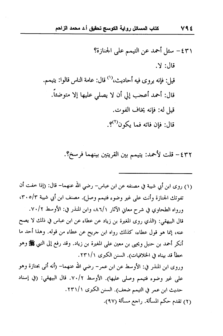 [431-] سئل أحمد عن التيمم على الجنازة؟
