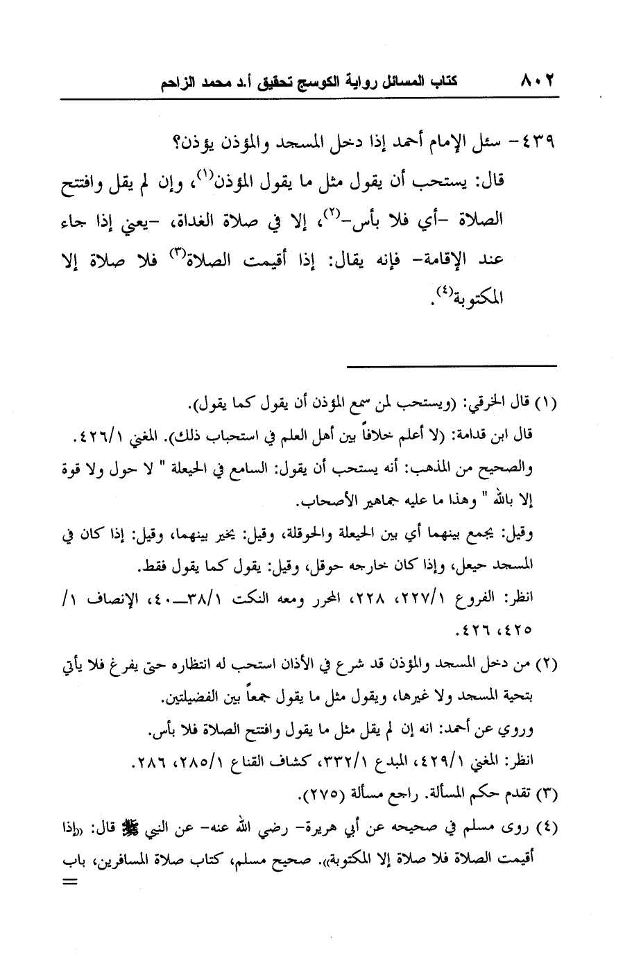 انظر: المغني 1/429، المبدع 1/332، كشاف القناع 1/285، 286.