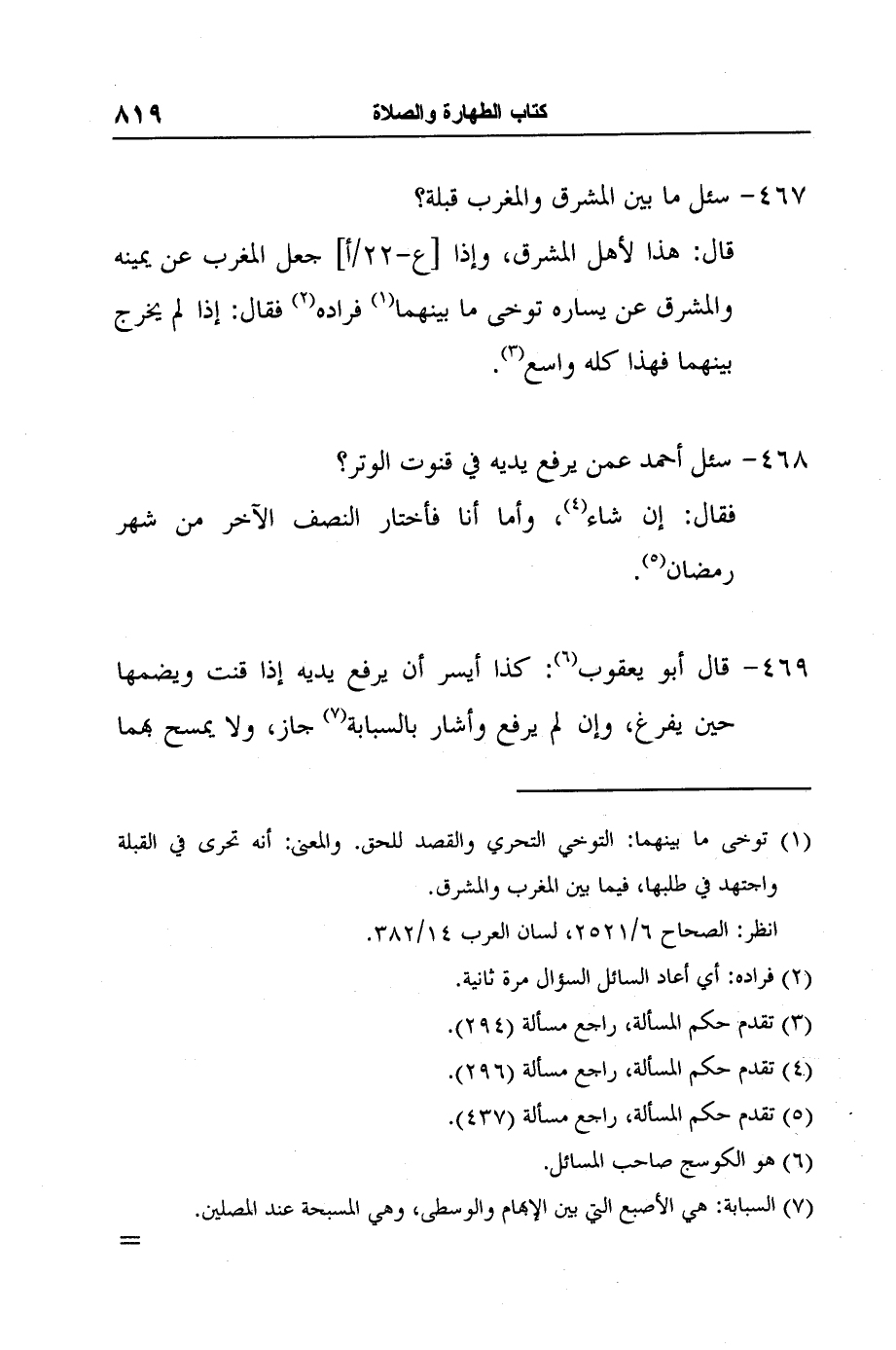[468-] سئل أحمد عمن يرفع يديه في قنوت الوتر؟