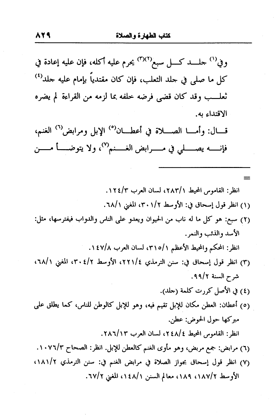 7 انظر قول إسحاق بجواز الصلاة في مرابض الغنم في: سنن الترمذي 2/181، الأوسط 2/187، 189، معالم السنن 1/148، المغني 2/67.