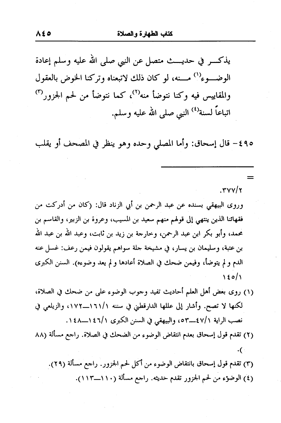 4 الوضوء من لحم الجزور تقدم حديثه. راجع مسألة (110ـ113) .