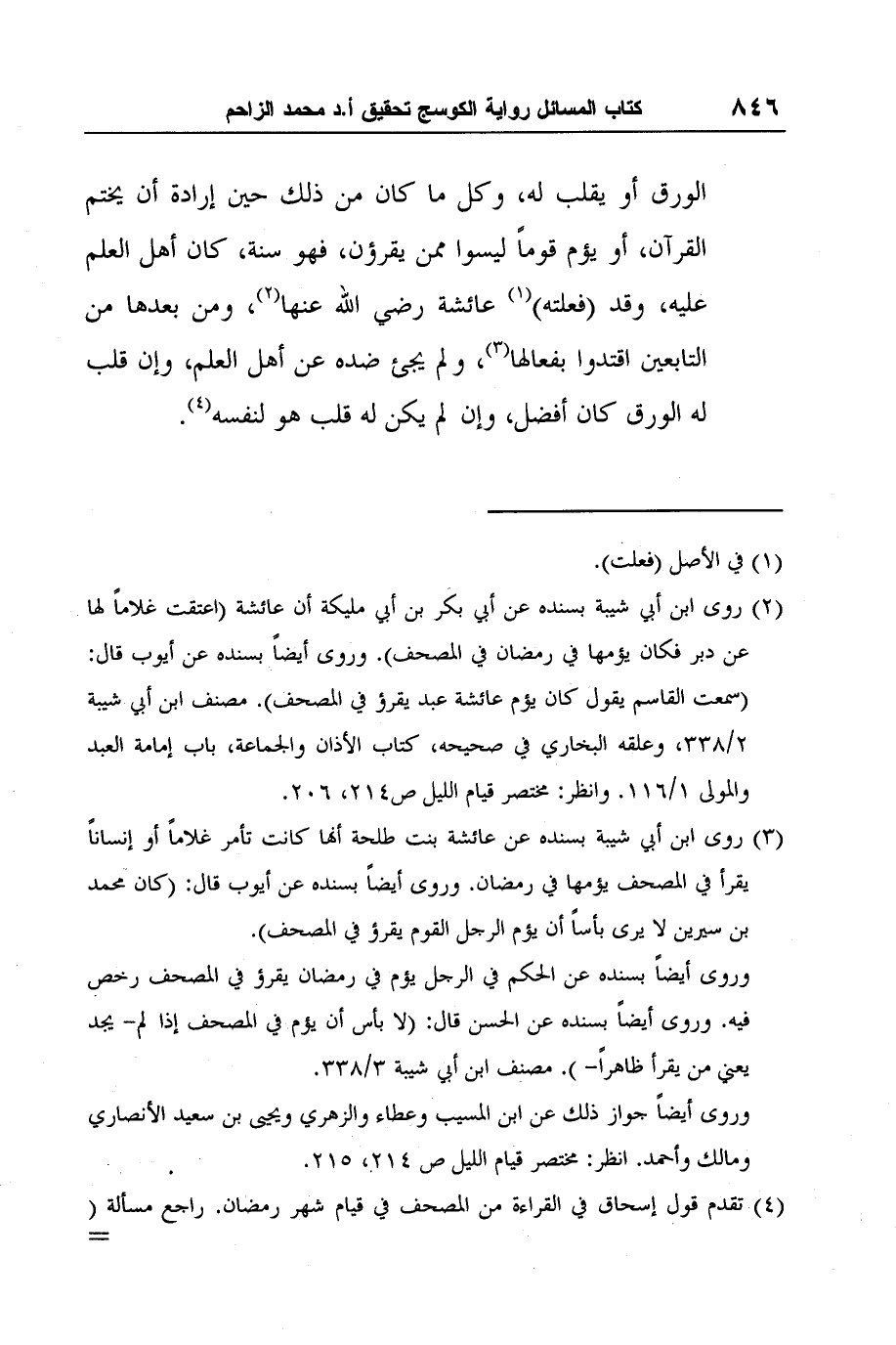 4 تقدم قول إسحاق في القراءة من المصحف في قيام شهر رمضان. راجع مسألة (388) .
