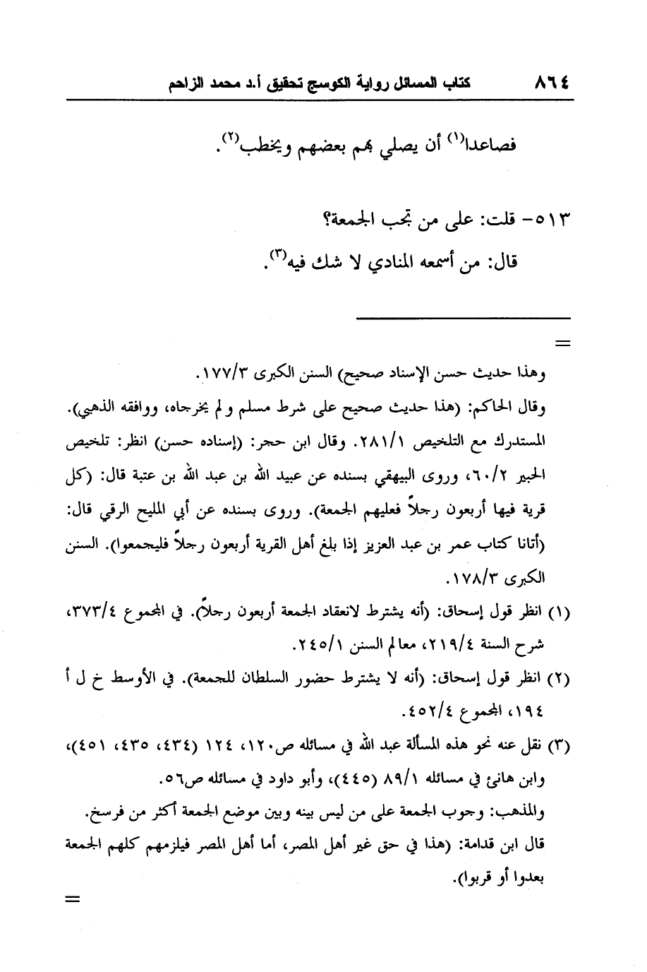 2 انظر قول إسحاق: (أنه لا يشترط حضور السلطان للجمعة) . في الأوسط خ ل أ 194، المجموع 4/452.
