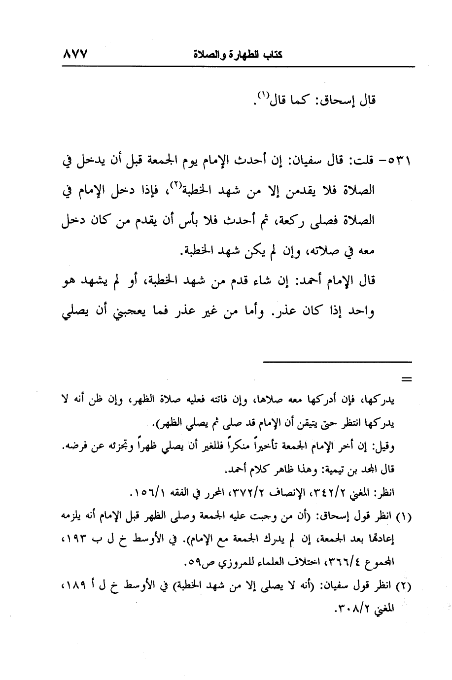 2 انظر قول سفيان: (أنه لا يصلى إلا من شهد الخطبة) في الأوسط خ ل أ 189، المغني 2/308.