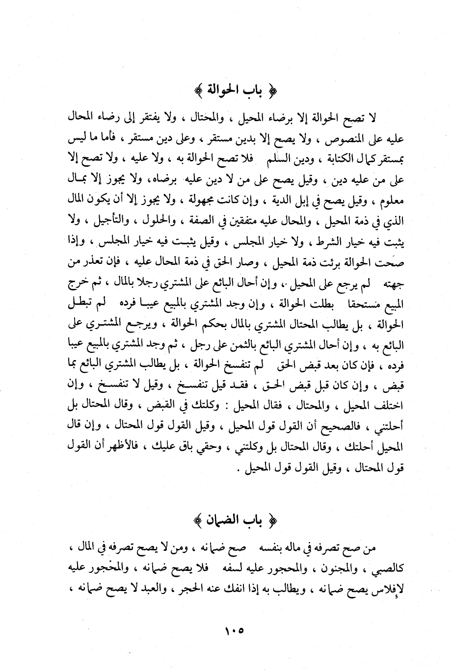 لا تصح الحوالة الا برضاء المحيل, والمحتال ولا يفتقر الى رضاء المحال عليه على المنصوص, ولا يصح الا بدين مستقر وعلى دين مستقر فأما ما ليس بمستقر كمال الكتابة ودين السلم, فلا تصح الحوالة به ولا عليه ولا تصح الا على من عليه دين وقيل يصح على من لا دين عليه برضاه ولا يجوز الا بمال معلوم وقيل يصح في ابل الدية وان كانت مجهولة, ولا يجوز الا أن يكون المال الذي في ذمة المحيل والمحال عليه متفقين في الصفة والحلول والتأجيل ولا يثبت فيه خيار الشرط ولا خيار المجلس وقيل يثبت فيه خيار المجلس واذا صحت الحوالة برئت ذمة المحيل, وصار الحق في ذمة المحال عليه فإن تعذر من جهته لم يرجع على المحيل وان أحال البائع على المشتري رجلا بالمال, ثم خرج المبيع مستحقا بطلت الحوالة وان وجد المشتري بالمبيع عيبا فرده لم تبطل الحوالة بل يطالب المحتال المشتري بالمال بحكم الحوالة, ويرجع المشتري على البائع به وان أحال المشتري البائع بالثمن على رجل ثم وجد المشتري بالمبيع عيبا فرده فإن كان بعد قبض الحق لم تنفسخ الحوالة بل يطالب المشتري البائع بما قبض, وان كان قبل قبض الحق فقد قيل تنفسخ وقيل لا تنفسخ وان اختلف المحيل والمحتال فقال المحيل وكلتك في القبض وقال المحتال بل أحلتني فالصحيح أن القول قول المحيل وقيل القول قول المحتال وان قال المحيل أحلتك وقال المحتال بل وكلتني وحقي باق عليك فالأظهر أن القول قول المحتال وقيل القول قول المحيل.