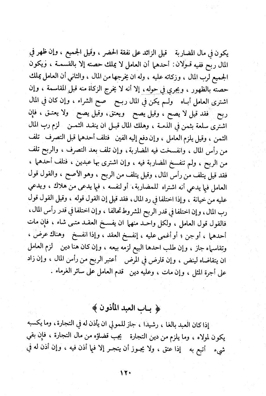 اذا كان العبد بالغا رشيدا جاز للمولي أن يأذن له في التجارة وما يكسبه يكون لمولاه وما يلزم من دين التجارة يجب قضاؤه من مال التجارة فإن بقي شيء اتبع به اذا عتق ولا يجوز أن يتجر الا فيما أذن فيه وان أذن له في