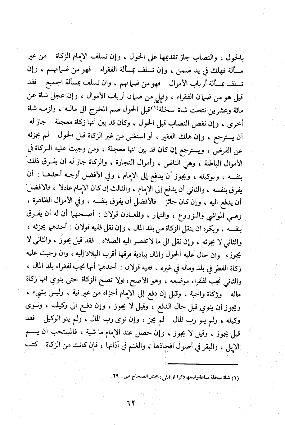 بالحول والنصاب جاز تقديمها على الحول وان تسلف الامام الزكاة من غير مسألة فهلك في يد ضمن وان تسلف بمسألة الفقراء فهو من ضمانهم وان تسلف بمسألة أرباب الأموال فهو من ضمانهم وان تسلف بمسألة الجميع فقد قيل هو من ضمان الفقراء وقيل من ضمان أرباب الأموال وان عجل شاة عن مائة وعشرين نتجت شاة سخلة1 قبل الحول ضم المخرج الى ماله ولزمه شاة أخرى وان نقص النصاب قبل الحول وكان قد بين أنها زكاة معجلة جاز له أن يسترجع وان هلك الفقير أو استغنى من غير الزكاة قبل الحول لم يجزئه عن الفرض ويسترجع ان كان قد بين انها معجلة ومن وجبت عليه الزكاة في الأموال الباطنة وهي الناض وأموال التجارة والزكاة جاز له أن يفرق ذلك بنفسه وبوكيله ويجوز أن يدفع الى الامام وفي الأفضل أوجه أحدها: أن يفرق بنفسه والثاني أن يدفع الى الامام والثالث ان كان الامام عادلا فالأفضل أن يدفع اليه وان كان جائز فالأفضل أن يفرق بنفسه وفي الأموال الظاهرة وهي المواشي والزروع والثمار والمعادن قولان: أصحهما أن له أن يفرق بنفسه ويكره أن ينقل الزكاة من بلد المال وان نقل ففيه قولان: أحدهما يجزئه والثاني لا يجزئه وان نقل الى ما لا تقصر اليه الصلاة فقد قيل يجوز والثاني لا يجوز وان حال عليه الحول والمال ببادية فرقها أقرب البلاد اليه وان وجبت عليه زكاة الفطر في بلد وماله في غيره ففيه قولان أحدهما أنها تجب لفقراء بلد المال والثاني تجب لفقراء موضعه وهو الأصح ولا تصح الزكاة حتى ينوي انها زكاة ماله وزكاة واجبة وقيل ان دفع الى الامام أجزأه من غير نية وليس بشيء ويجوز أن ينوي قبل حال الدفع وقيل لا يجوز وان دفع الى وكيله ونوى وكيله ولم ينو رب المال لم يجز وان نوى رب المال ولم ينو الوكيل فقد قيل يجوز وقيل لا يجوز وان حصل عند الامام ماشية فالمستحب أن يسم الابل والبقر في أصول أفخاذها والغنم في آذانها فإن كانت من الزكاة كتب
