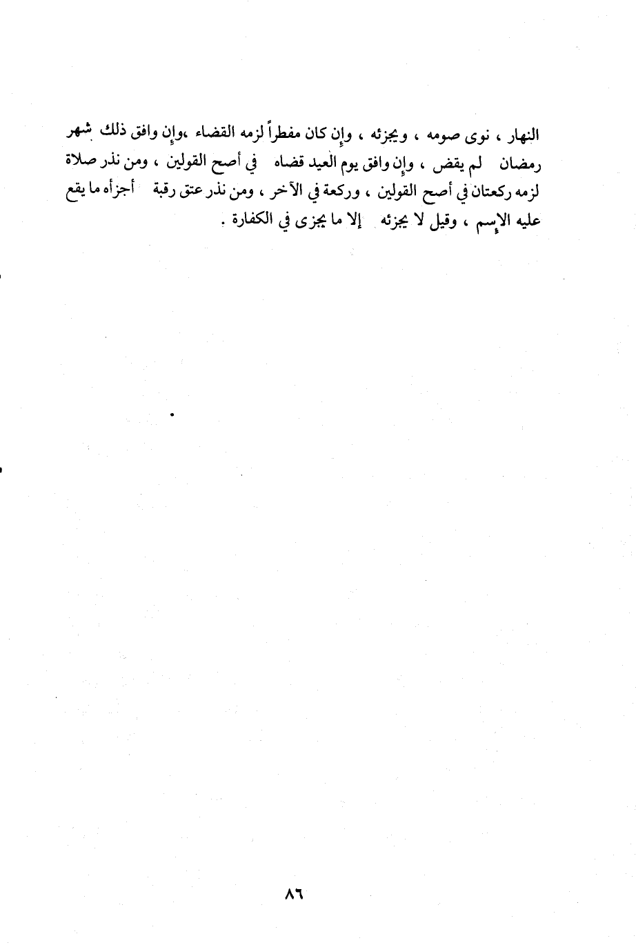 النهار نوى صومه ويجزئه وان كان مفطرا لزمه القضاء وان وافق ذلك شهر رمضان لم يقض وان وافق يوم العيد قضاه في أصح القولين ومن نذر صلاة لزمه ركعتان في أصح القولين وركعة في الآخر ومن نذر عتق رقبة أجزأه ما يقع عليه الاسم وقيل لا يجزئه الا ما يجزي في الكفارة.