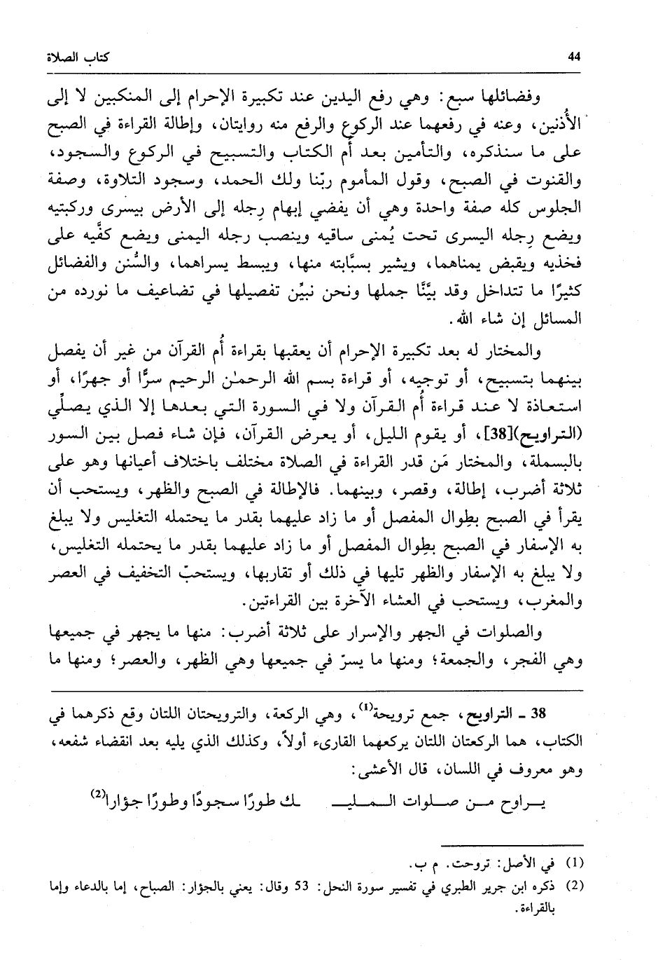 منها ويبسط يسراهما والسنن والفضائل كثيراً ما تتداخل وقد بينا جملها ونحن نبين تفصيلها في تضاعيف ما نورده من المسائل إن شاء الله.