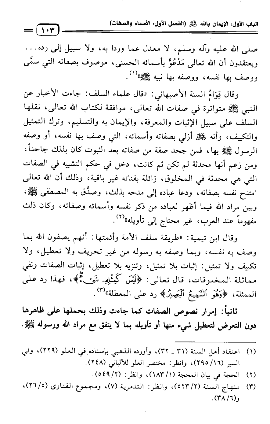 ثانيًا: إمرار نصوص الصفات كما جاءت وذلك بحملها على ظاهرها دون التعرض لتعطيل شيء منها أو تأويله بما لا يتفق مع مراد الله ورسوله -صلى الله عليه وسلم-.