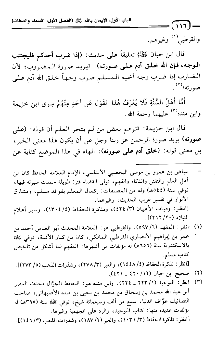 (¬٣) انظر: التوحيد (١/ ٢٢٣ - ٢٢٤). وابن منده هو: الحافظ الجوَّال محدث العصر أبو عبد الله محمد بن إسحاق بن محمد بن يحيى بن منده الأصبهاني، صاحب التصانيف طوَّاف الدنيا، سمع من ألف وسبعمائة شيخ، توفي رحمه الله سنة (٣٩٥ هـ) له مؤلفات عديدة منها: كتاب التوحيد، والرد على الجهمية وغيرها. [انظر: تذكرة الحفاظ (٣/ ١٠٣١)، والعبر (٢/ ١٨٧)، وشذرات الذهب (٣/ ١٤٦)].