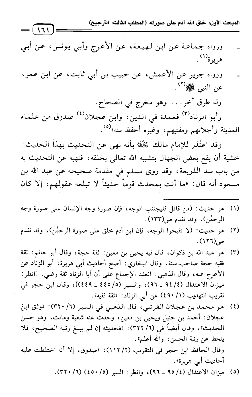 (¬٢) هو حديث: (لا تقبحوا الوجه، فإن ابن آدم خلق على صورة الرحمن)، وقد تقدم ص (١٢٦).