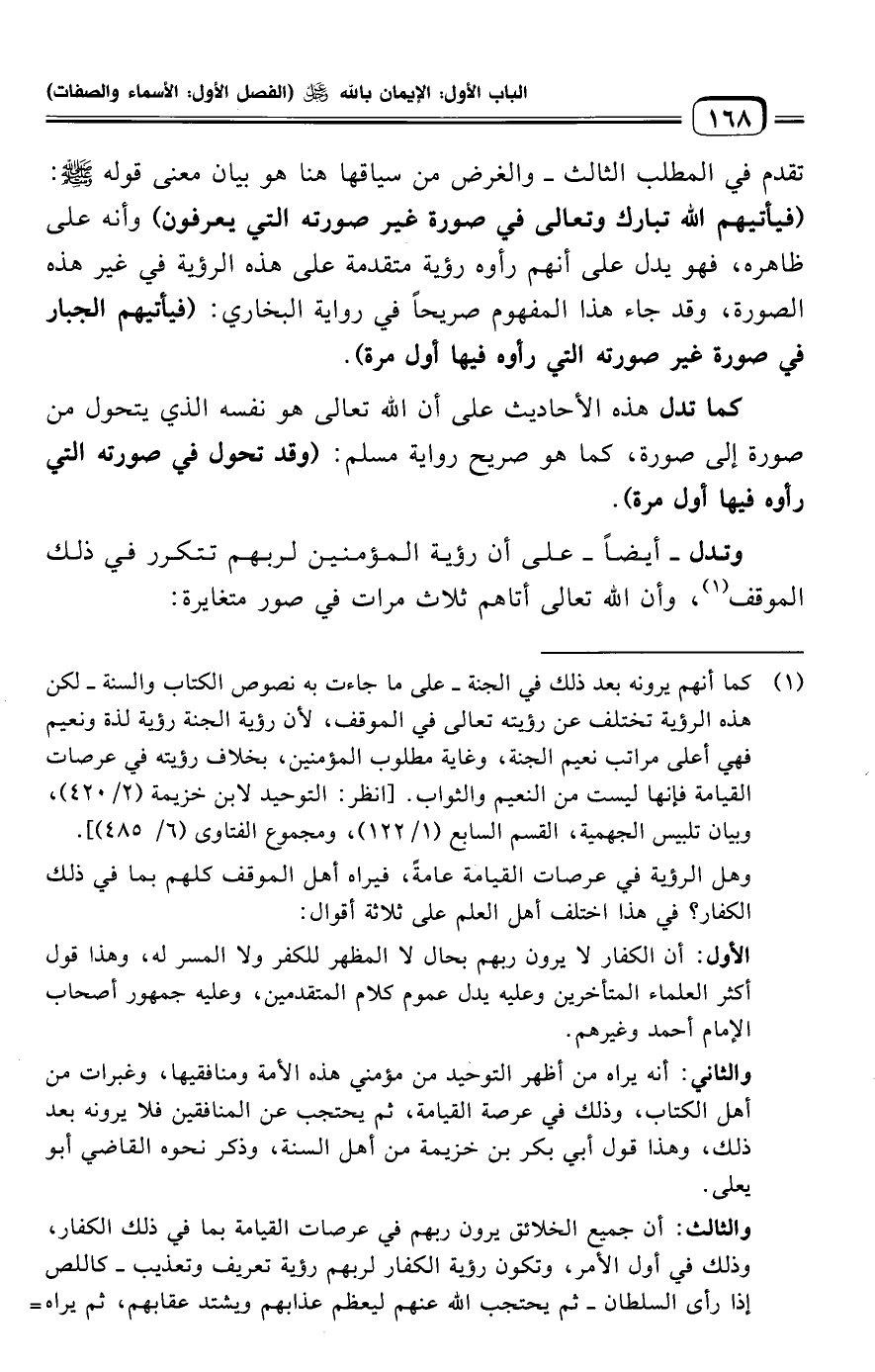 وتدل -أيضًا- على أن رؤية المؤمنين لربهم تتكرر في ذلك الموقف (¬١)، وأن الله تعالى أتاهم ثلاث مرات في صور متغايرة: