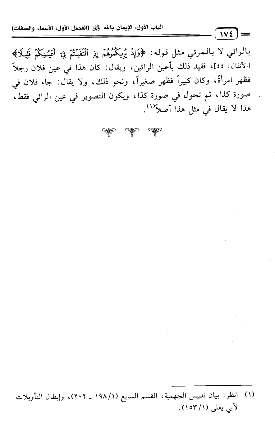 (¬١) انظر: بيان تلبيس الجهمية، القسم السابع (١/ ١٩٨ - ٢٠٢)، وإبطال التأويلات لأبي يعلى (١/ ١٥٣).