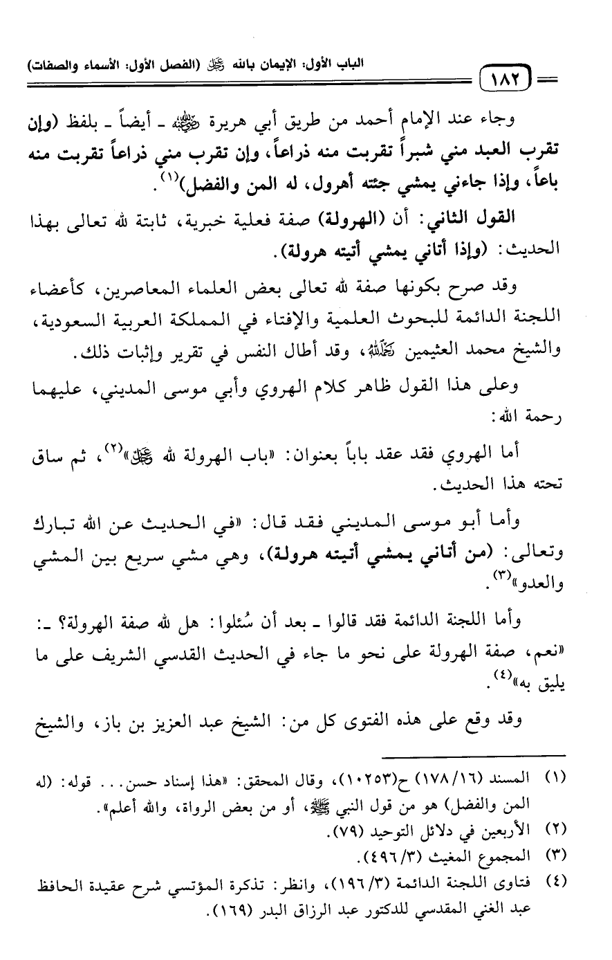 (¬٤) فتاوى اللجنة الدائمة (٣/ ١٩٦)، وانظر: تذكرة المؤتسي شرح عقيدة الحافظ عبد الغني المقدسي للدكتور عبد الرزاق البدر (١٦٩).
