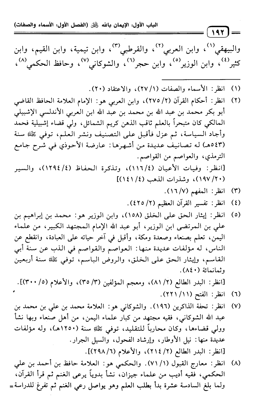 والبيهقي (¬١)، وابن العربي (¬٢)، والقرطبي (¬٣)، وابن تيمية، وابن القيم، وابن كثير (¬٤)، وابن الوزير (¬٥)، وابن حجر (¬٦)، والشوكاني (¬٧)، وحافظ الحكمي (¬٨)،