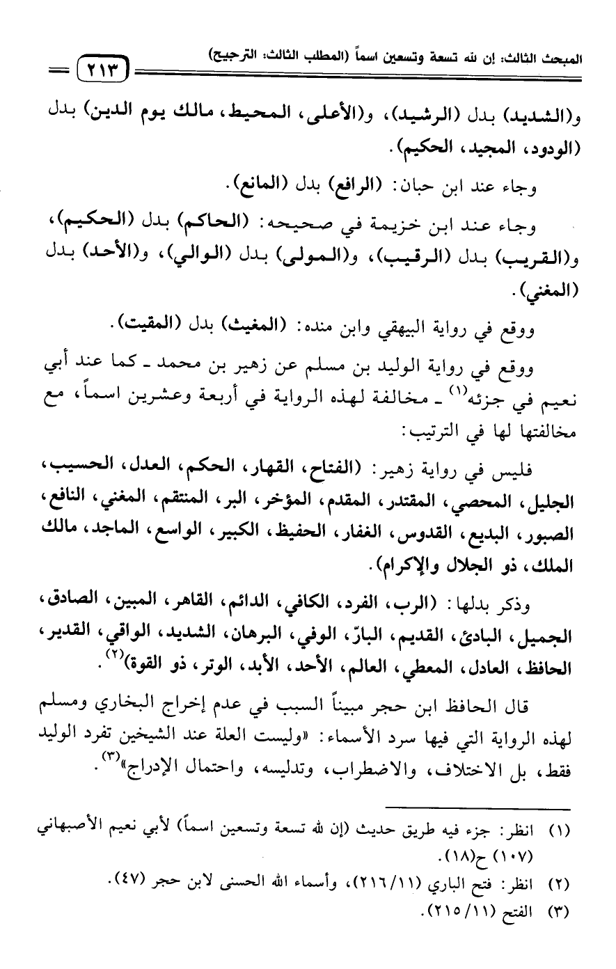 (¬٢) انظر: فتح الباري (١١/ ٢١٦)، وأسماء الله الحسنى لابن حجر (٤٧).