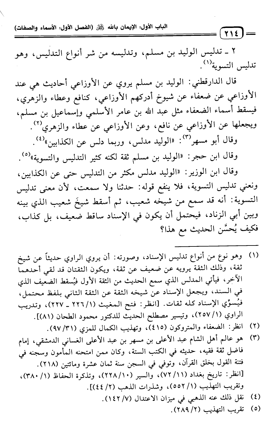 وقال ابن حجر: "الوليد بن مسلم ثقة لكنه كثير التدليس والتسوية" (¬٥).