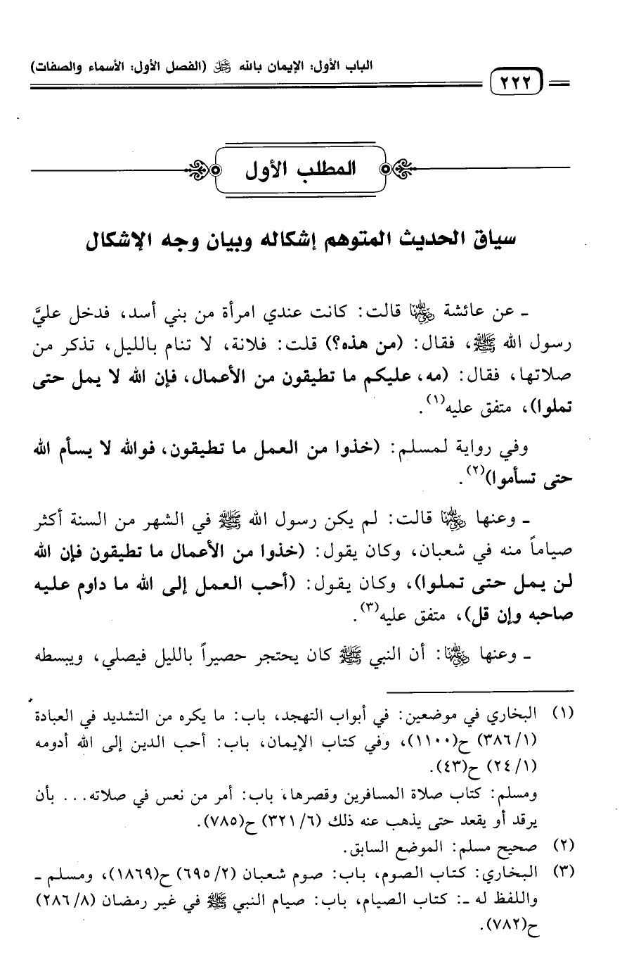 (¬١) البخاري في موضعين: في أبواب التهجد، باب: ما يكره من التشديد في العبادة (١/ ٣٨٦) ح (١١٠٠)، وفي كتاب الإيمان، باب: أحب الدين إلى الله أدومه (١/ ٢٤) ح (٤٣).