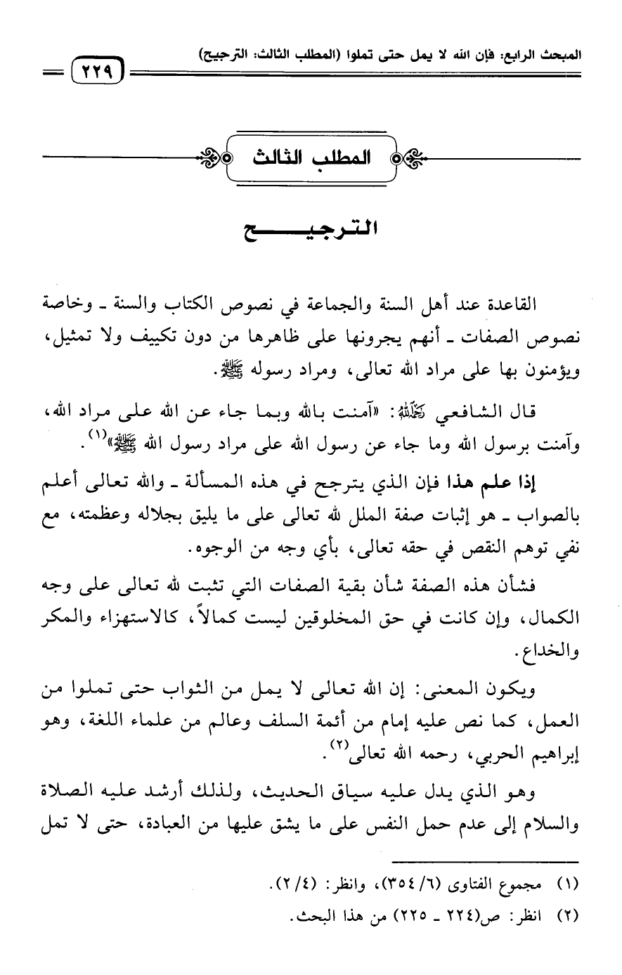 إذا علم هذا فإن الذي يترجح في هذه المسألة -والله تعالى أعلم بالصواب- هو إثبات صفة الملل لله تعالى على ما يليق بجلاله وعظمته، مع نفي توهم النقص في حقه تعالى، بأي وجه من الوجوه.