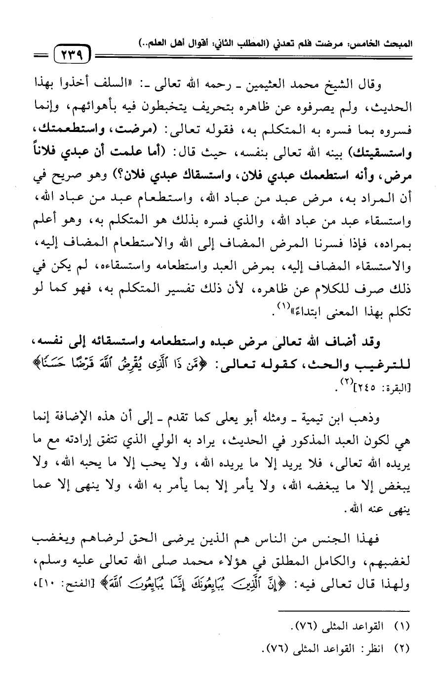 (¬٢) انظر: القواعد المثلى (٧٦).