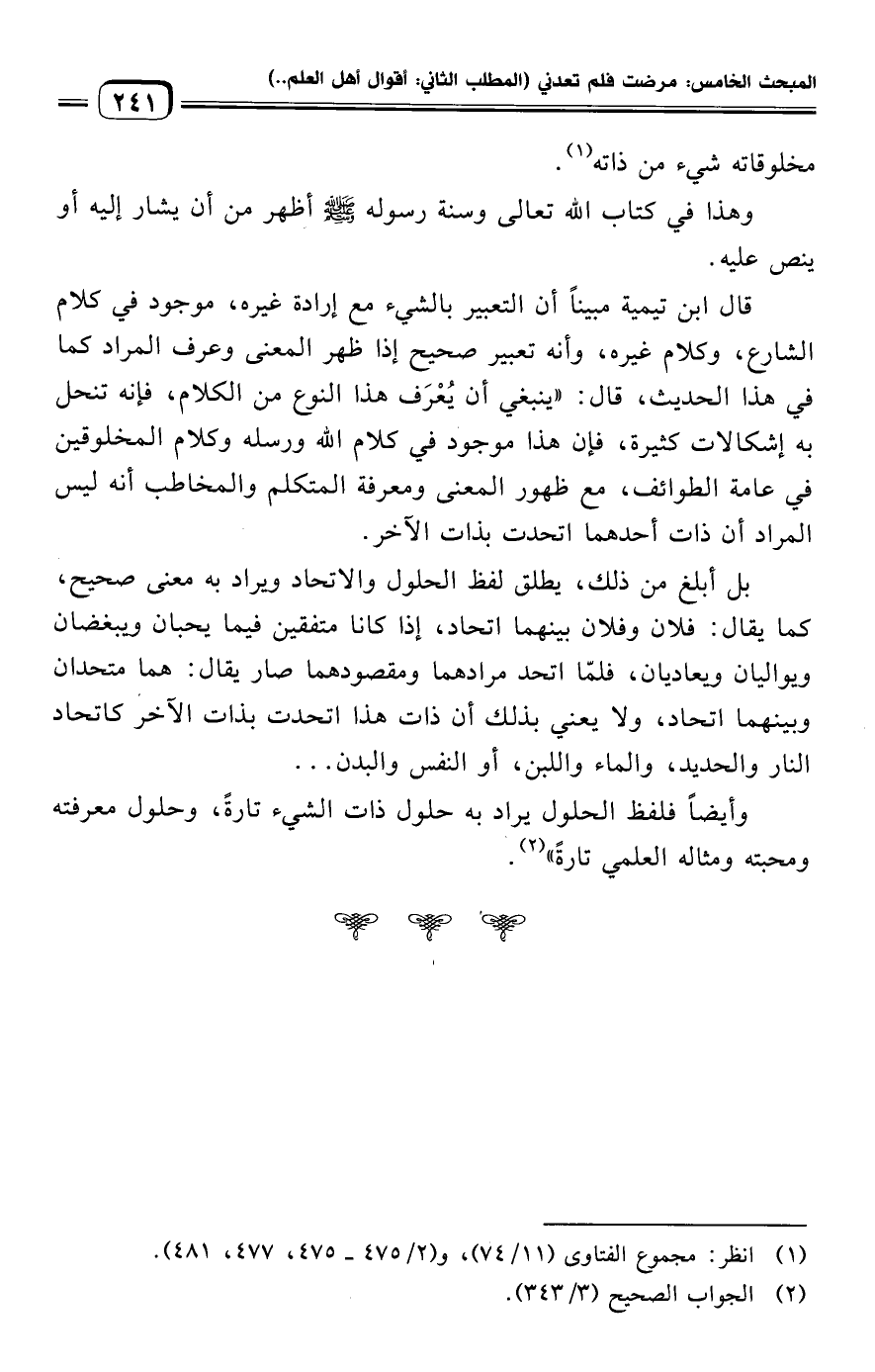 (¬١) انظر: مجموع الفتاوى (١١/ ٧٤)، و (٢/ ٤٧٥ - ٤٧٥، ٤٧٧، ٤٨١).