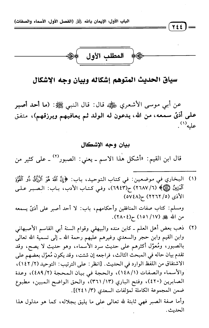 قال ابن القيم: "أشكل هذا الاسم -يعني: الصبور (¬٢) - على كثير من