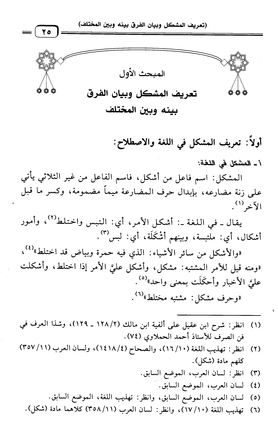 المبحث الأول: تعريف المشكل وبيان الفرق بينه وبين المختلف