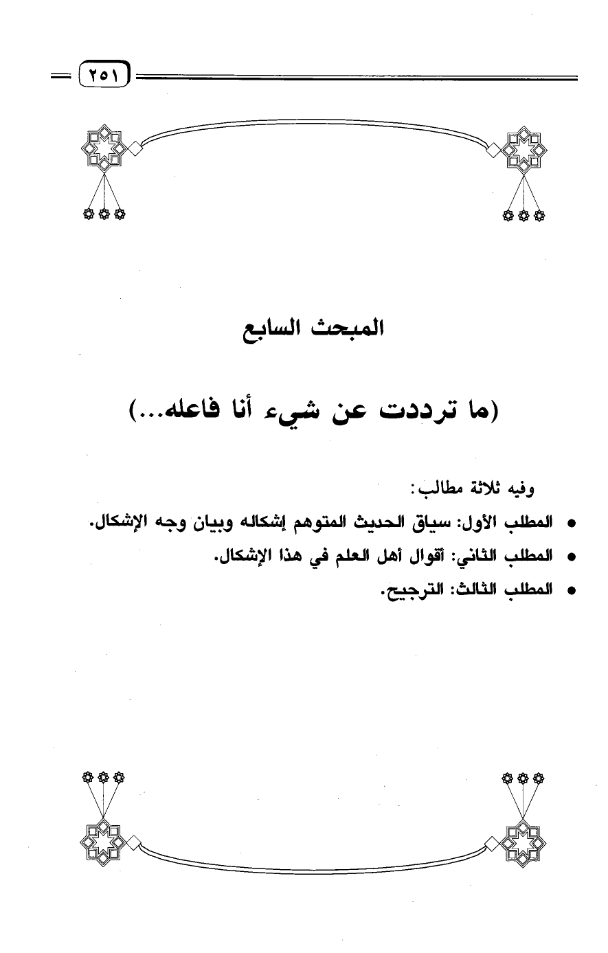 المبحث السابع: (ما ترددت عن شيء أنا فاعله. . .)