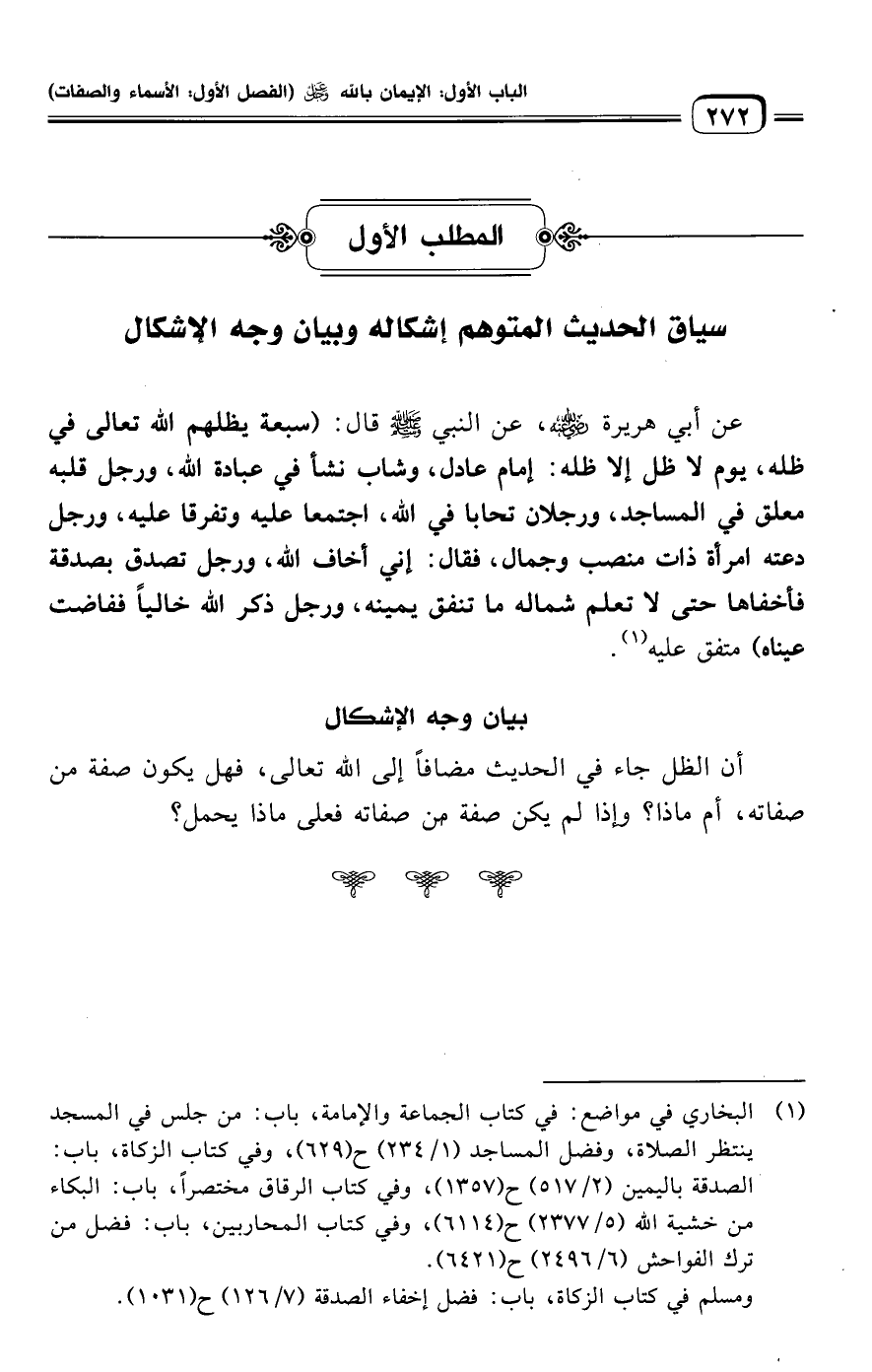 (¬١) البخاري في مواضع: في كتاب الجماعة والإمامة، باب: من جلس في المسجد ينتظر الصلاة، وفضل المساجد (١/ ٢٣٤) ح (٦٢٩)، وفي كتاب الزكاة، باب: الصدقة باليمين (٢/ ٥١٧) ح (١٣٥٧)، وفي كتاب الرقاق مختصرًا، باب: البكاء من خشية الله (٥/ ٢٣٧٧) ح (٦١١٤)، وفي كتاب المحاربين، باب: فضل من ترك الفواحش (٦/ ٢٤٩٦) ح (٦٤٢١).