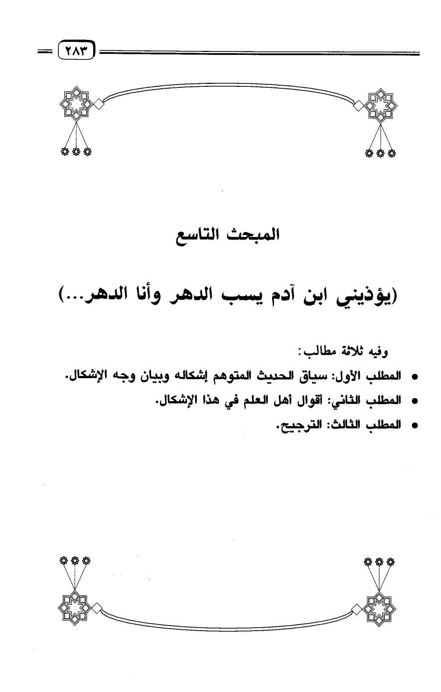 المبحث التاسع: (يؤذيني ابن آدم يسب الدهر وأنا الدهر. . .)