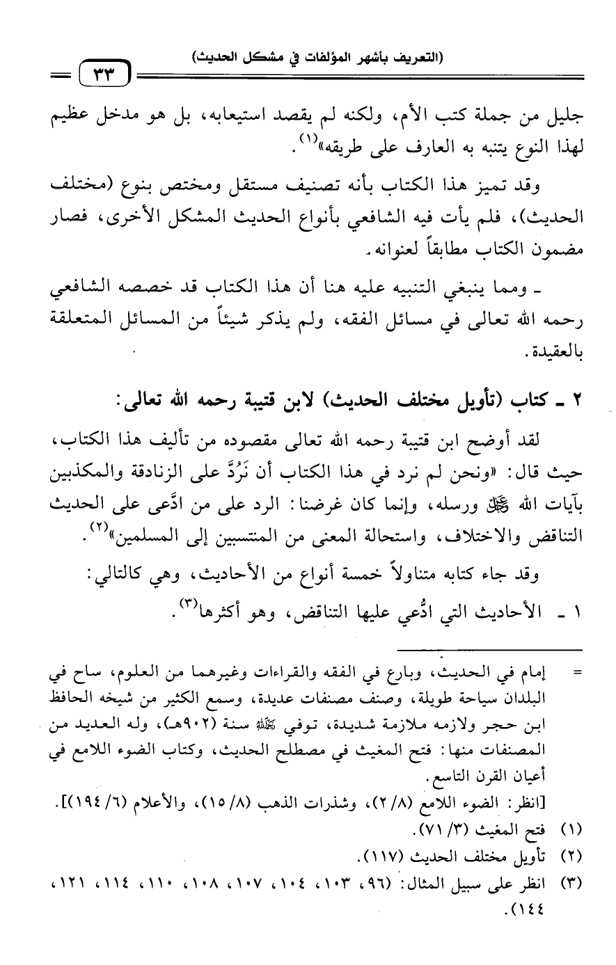 ٢ - كتاب (تأويل مختلف الحديث) لابن قتيبة رحمه الله تعالى: