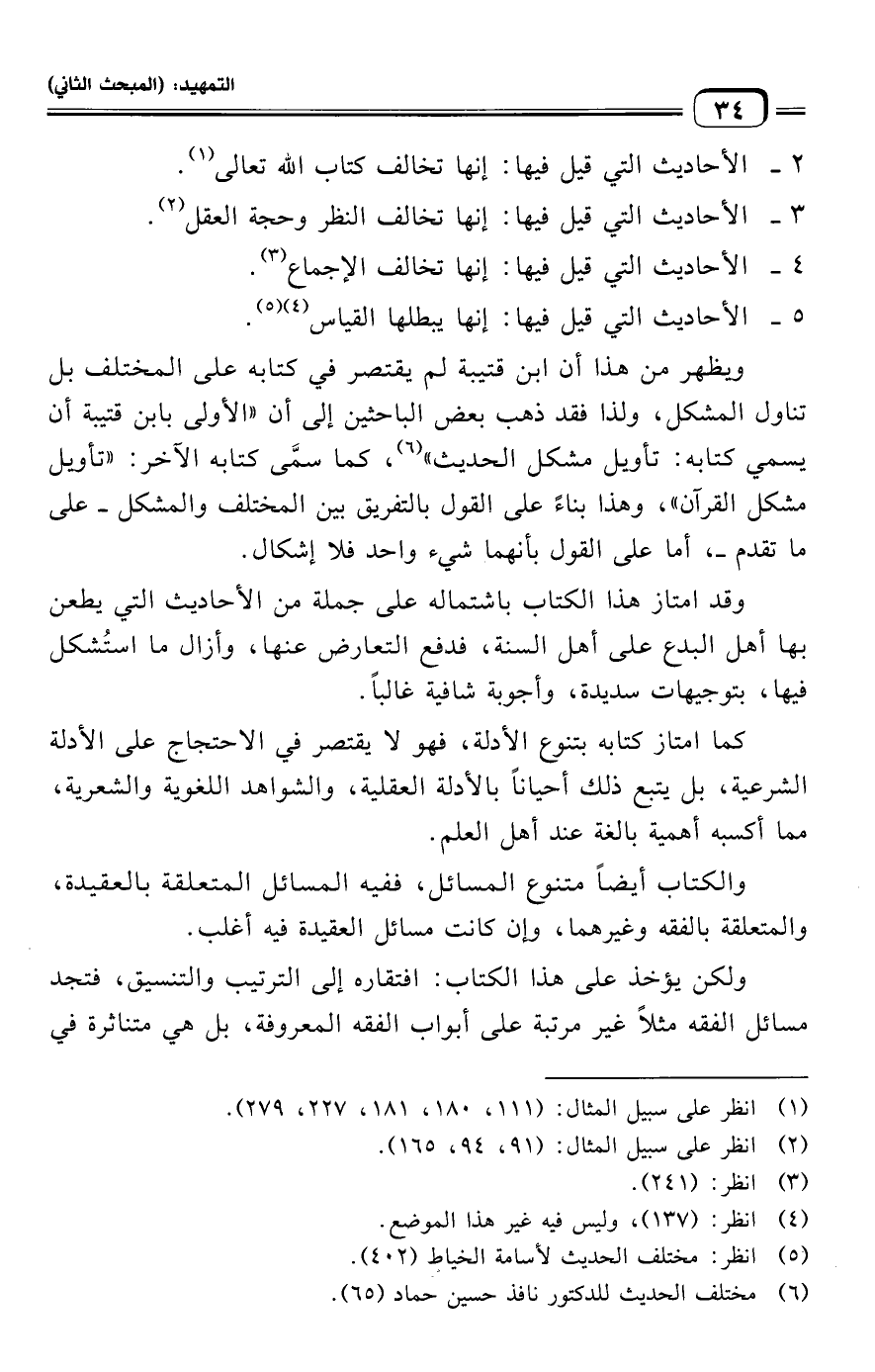 (¬٦) مختلف الحديث للدكتور نافذ حسين حماد (٦٥).