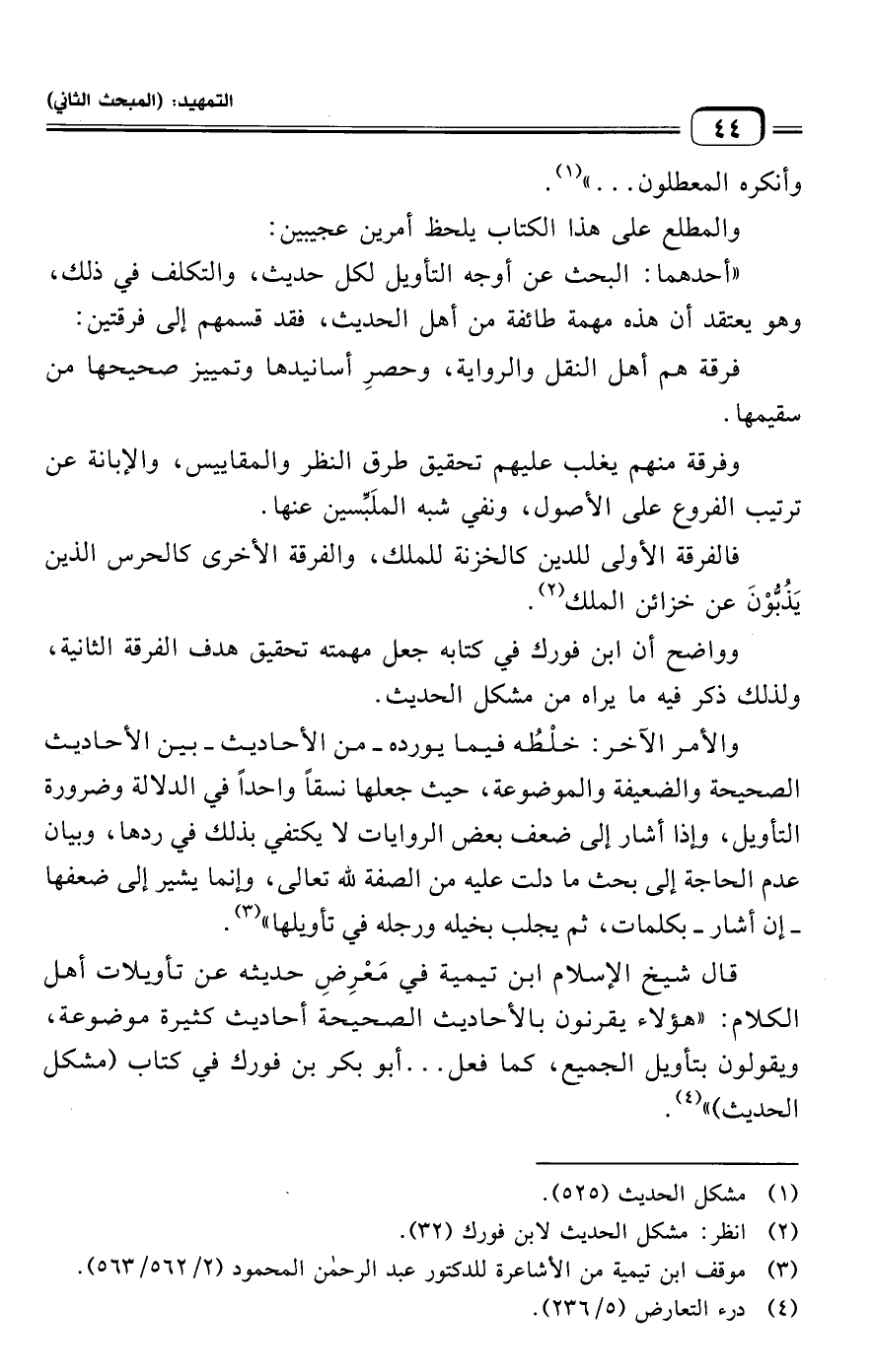 (¬٢) انظر: مشكل الحديث لابن فورك (٣٢).