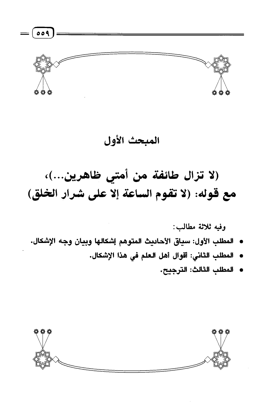 المبحث الأول: (لا تزال طائفة من أمتي ظاهرين. . .)، مع قوله: (لا تقوم الساعة إلا على شرار الخلق)
