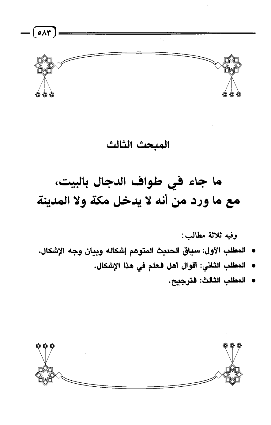 المبحث الثالث: ما جاء في طواف الدجال بالبيت، مع ما ورد من أنه لا يدخل مكة ولا المدينة