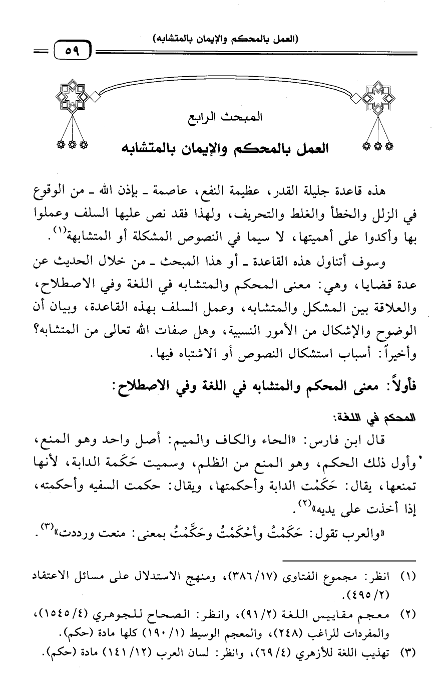 المبحث الرابع: العمل بالمحكم والإيمان بالمتشابه