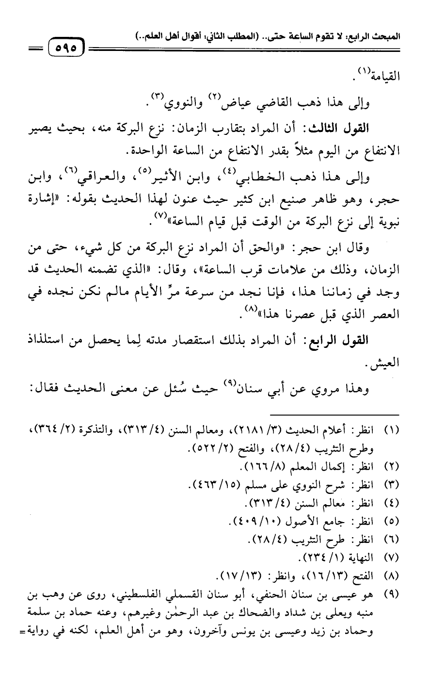 وإلى هذا ذهب الخطابي (¬٤)، وابن الأثير (¬٥)، والعراقي (¬٦)، وابن حجر، وهو ظاهر صنيع ابن كثير حيث عنون لهذا الحديث بقوله: "إشارة نبوية إلى نزع البركة من الوقت قبل قيام الساعة" (¬٧).