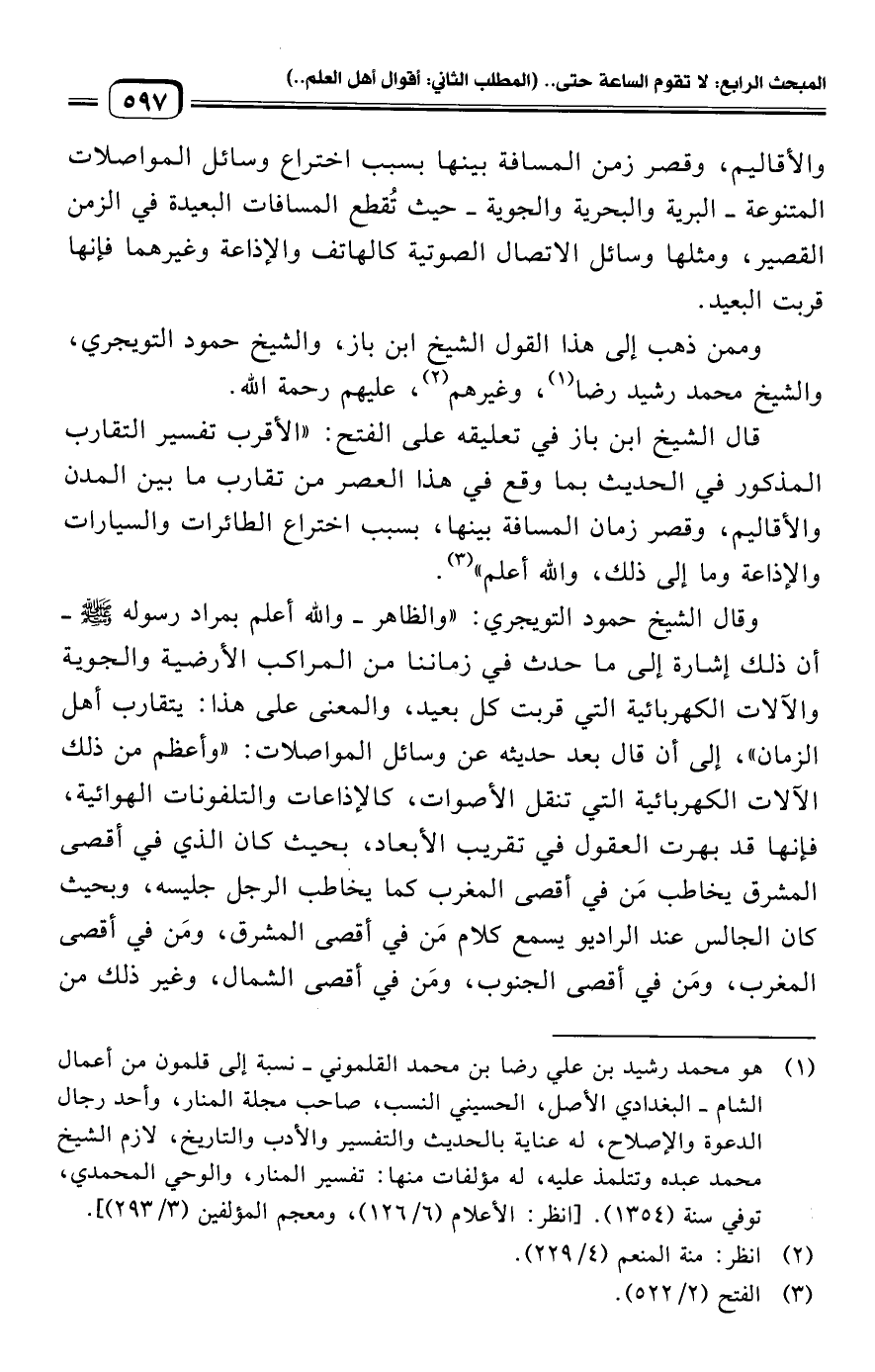 وممن ذهب إلى هذا القول الشيخ ابن باز، والشيخ حمود التويجري، والشيخ محمد رشيد رضا (¬١)، وغيرهم (¬٢)، عليهم رحمة الله.