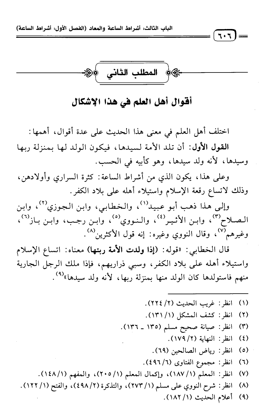 وعلى هذا، يكون الذي من أشراط الساعة: كثرة السراري وأولادهن، وذلك لاتساع رقعة الإسلام واستيلاء أهله على بلاد الكفر.