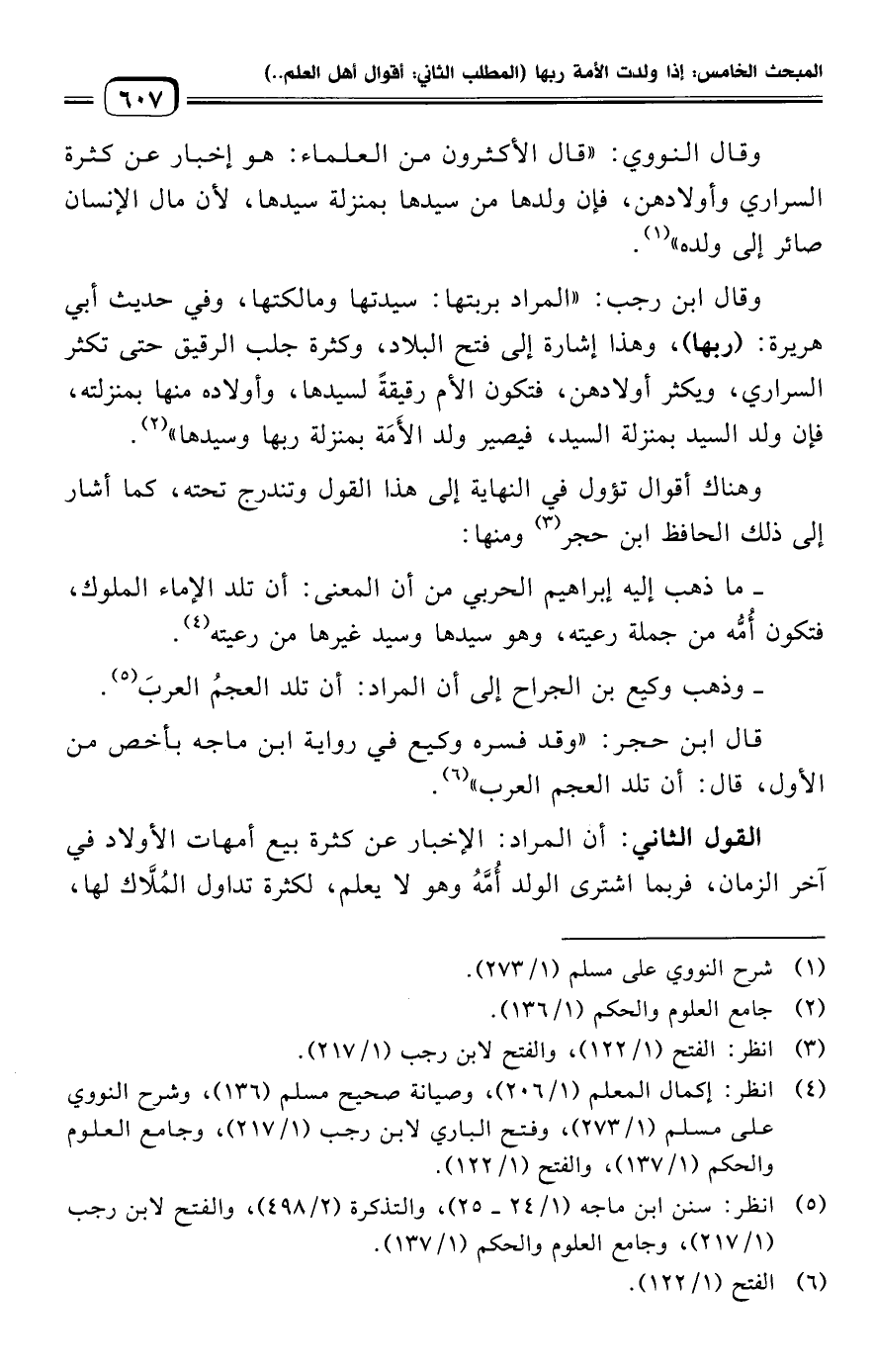 - ما ذهب إليه إبراهيم الحربي من أن المعنى: أن تلد الإماء الملوك، فتكون أُمُّه من جملة رعيته، وهو سيدها وسيد غيرها من رعيته (¬٤).