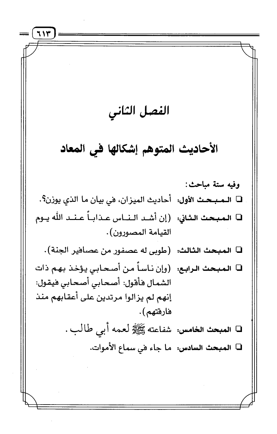 الفصل الثاني: الأحايث المتوهم إشكالها في المعاد